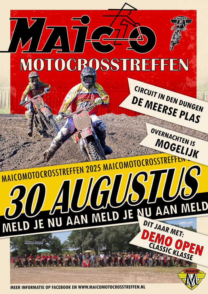 Het Internationale Maico Motocrosstreffen wordt dit jaar georganiseerd als vanouds op Circuit De Meerse Plas, Bosscheweg 64, 5275 HC Den Dungen.